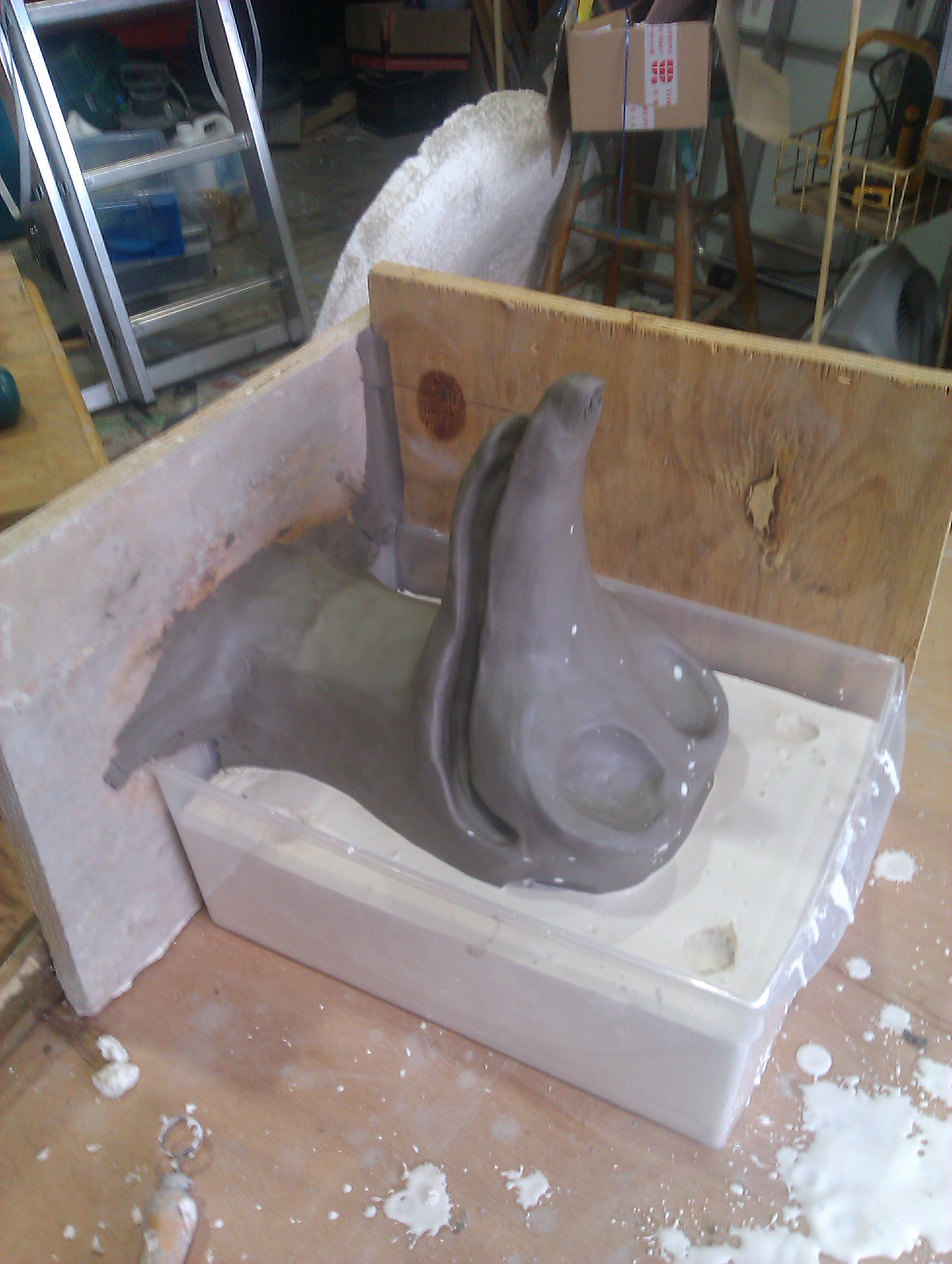 plaster poured up to a predetermined line on the model. This will be the point where the mould will split in 2.