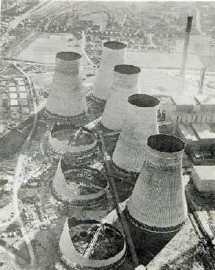 On the 1st November 1965, during high winds, three out of a group of eight cooling towers at Ferrybridge ‘C’ Power Station collapsed, with the remaining towers sustaining severe structural damage. The towers, each 375 feet high, had been constructed closer together than was usual and had greater shell diameters and shell surface area then any previous towers. The design and construction contract for the towers had been given to Film Cooling Towers (concrete) Ltd. in 1962.