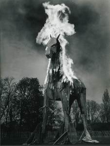 10 – It’s a Trojan Horse. This is in Thornes Park, Wakefield. A surprisingly busy place at 3 in the morning. Unusually heavy snow fall added to the experience of the three weeks camping on site necessary to guard the work in progress. That’s my green tent in the background.