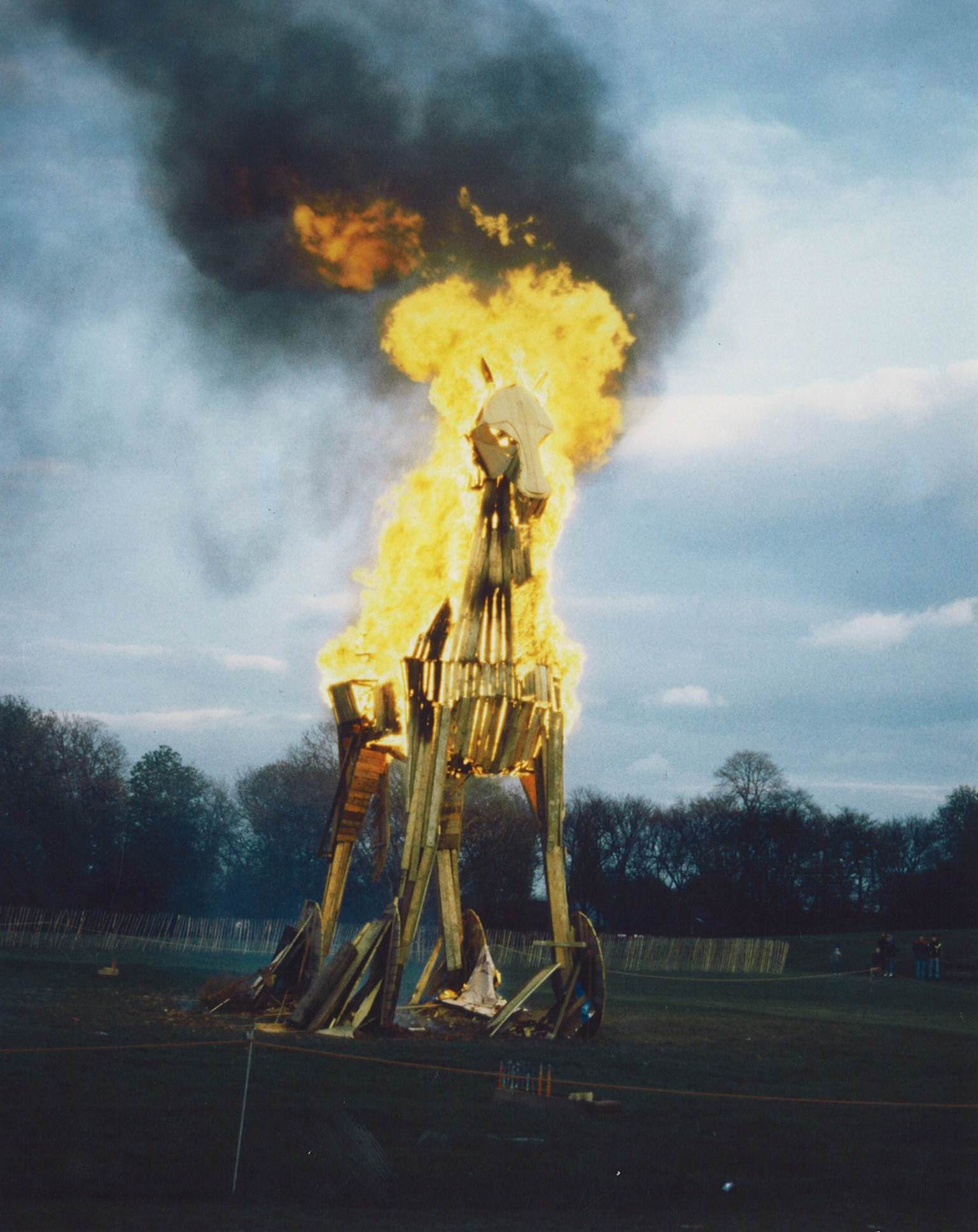 12 – The fiery mane was created by filling pop bottles with diesel and stringing them along the neck. About 3000 people came to see this, less than the 8000 that came to see Wakefield being destroyed. I guess we’ve got the measure of what local people would like to see burn.