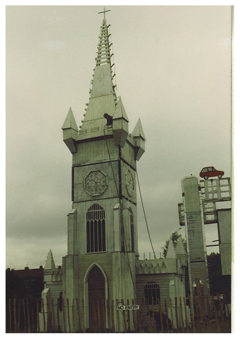 2 – The first sculpture commission that tried to kill me was for Wakefield Waterways Festival in 1988. 8 City landmarks were made out of scrap timber, old sheds and the remains of Christmas trees.