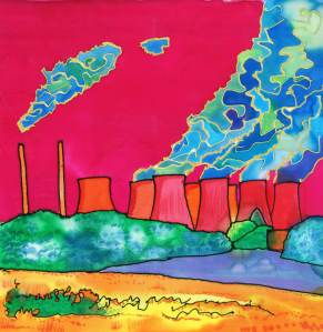 As a quick upload here is a very quick silk painting I did of Ferrybridge Power Station. It was a demonstration piece to show the colours you can use should you wish to explore colour more.