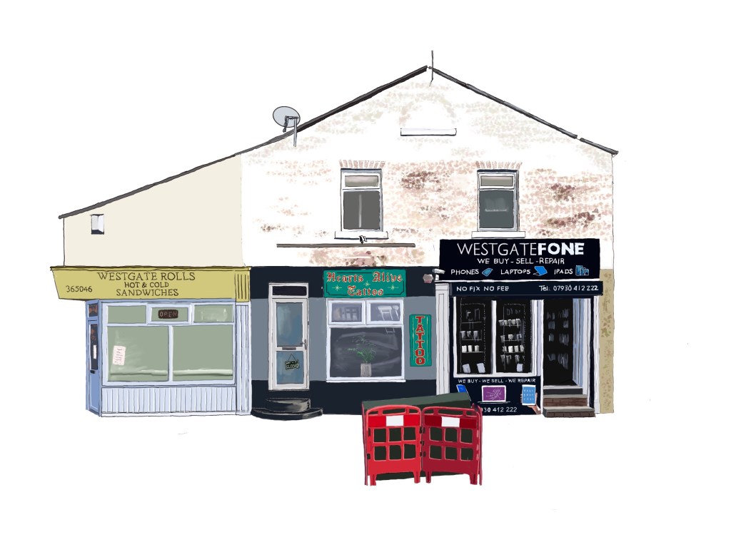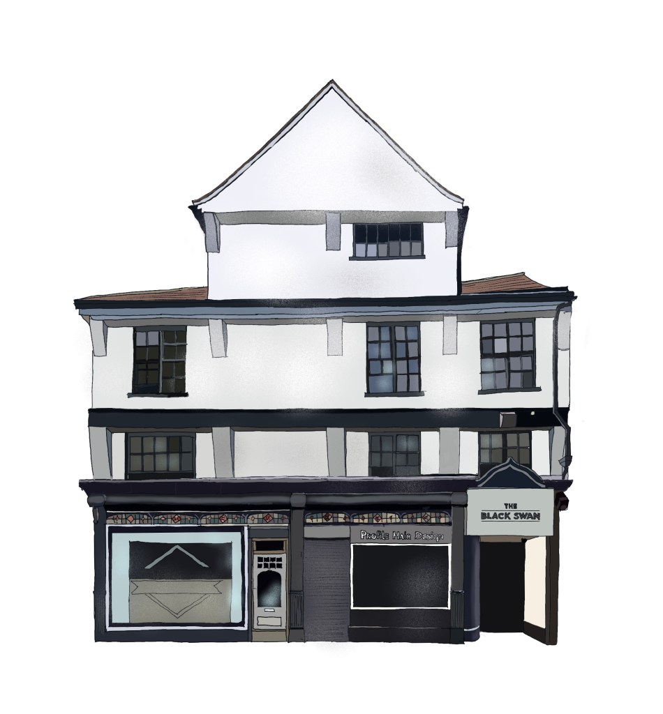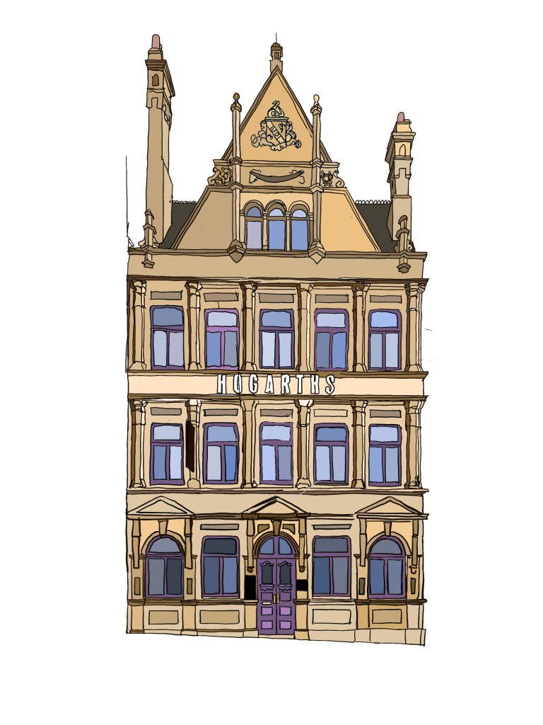 This re-exploration was sparked by a digital drawing I did for Edgelands Arts for a proposal they were working on. The drawing was of a pub called Hogarths, a rather splendid building on Westgate in Wakefield.