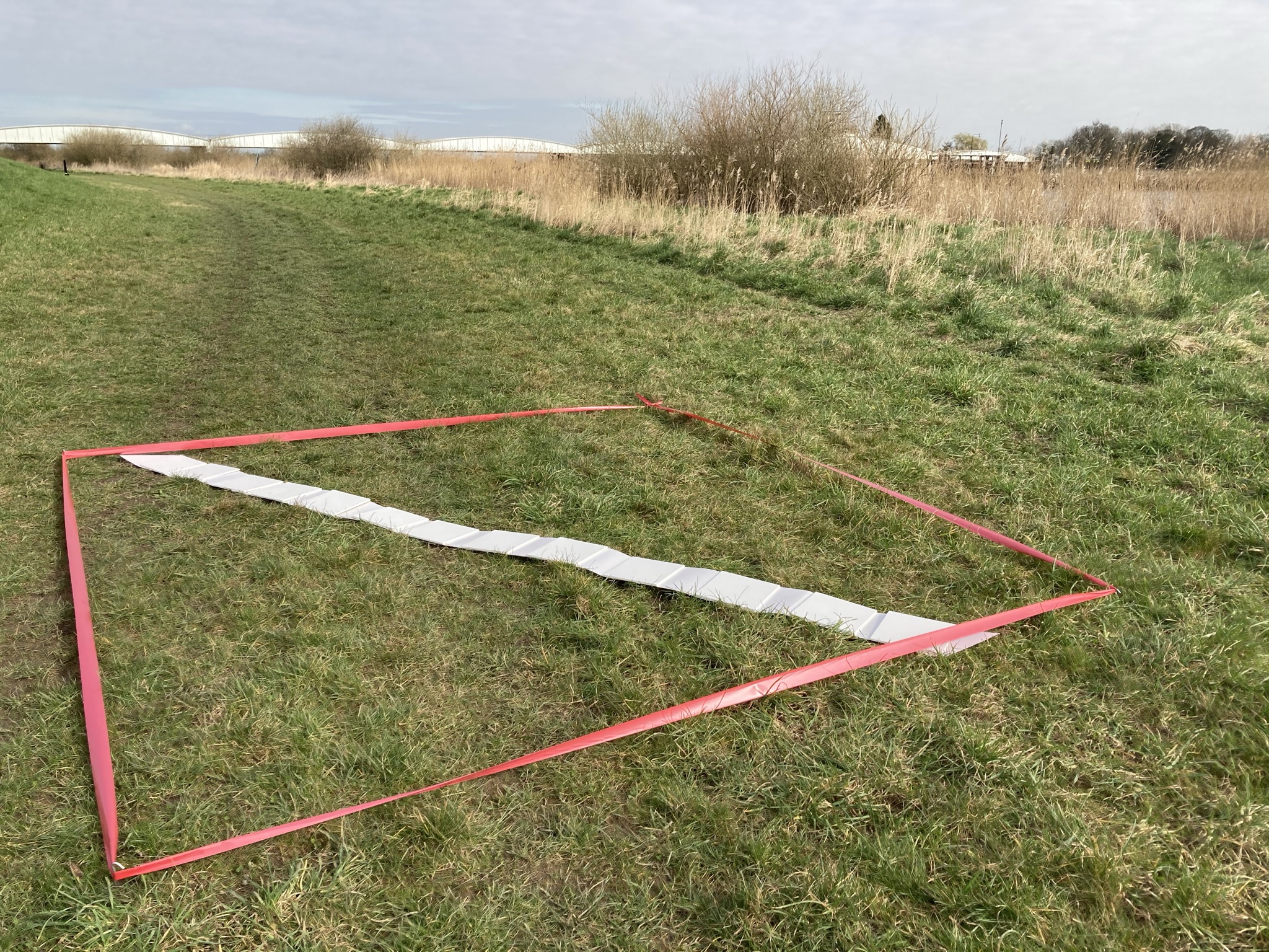 We have spent a year living with ever-changing rules, regulation and restrictions, not sure where our boundaries lie. This project has a restriction of its own, working within a 2km radius of Junction. I wanted to create a 1 to 1 scale map of my chosen square where, in all probability, the only feature on it would be the line (a slight arc) marking the circumference of my circle, an object that exists on my map but has no objective reality on the ground. I wanted to make this line real, if only temporarily.