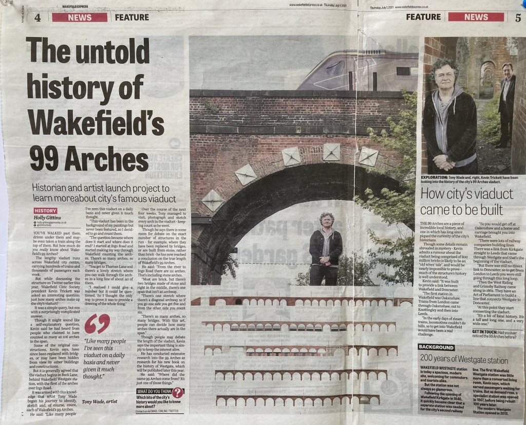 July 20, 2021Viaduct – Wakefield Express Scroll down to content Thanks to the Wakefield Express for taking an interest in my recent Viaduct explorations Share this: Click to share on X (Opens in new window) X Click to share on Facebook (Opens in new window) Facebook Like Loading... Related Published by tonywadearts Freelance artist View all posts by tonywadearts