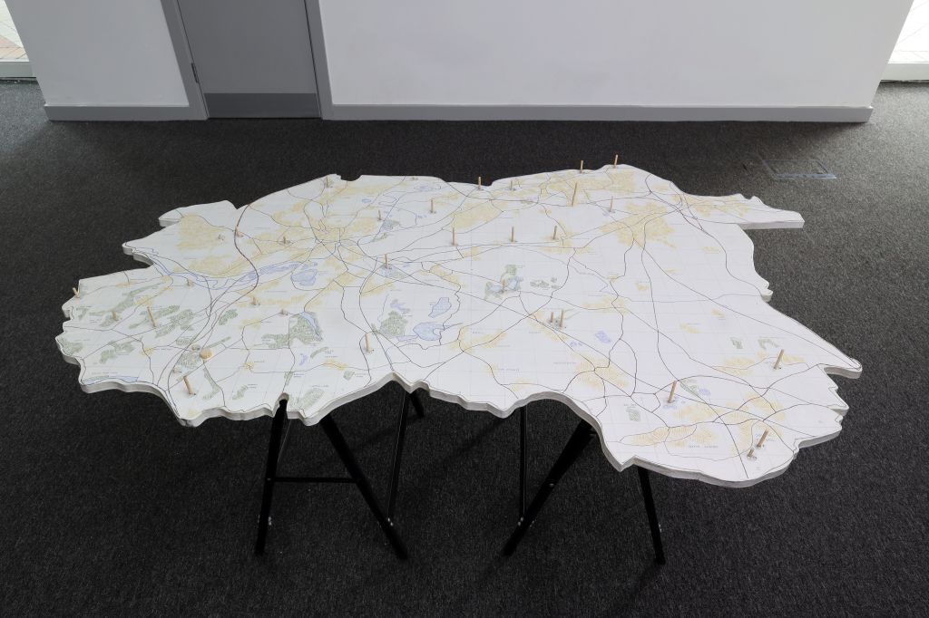 The project’s findings were documented through maps, paintings, drawings and sound. These were brought together, alongside previous work exploring the district, to form an interactive exhibition in The Ridings Shopping Centre, Wakefield in March 2023.