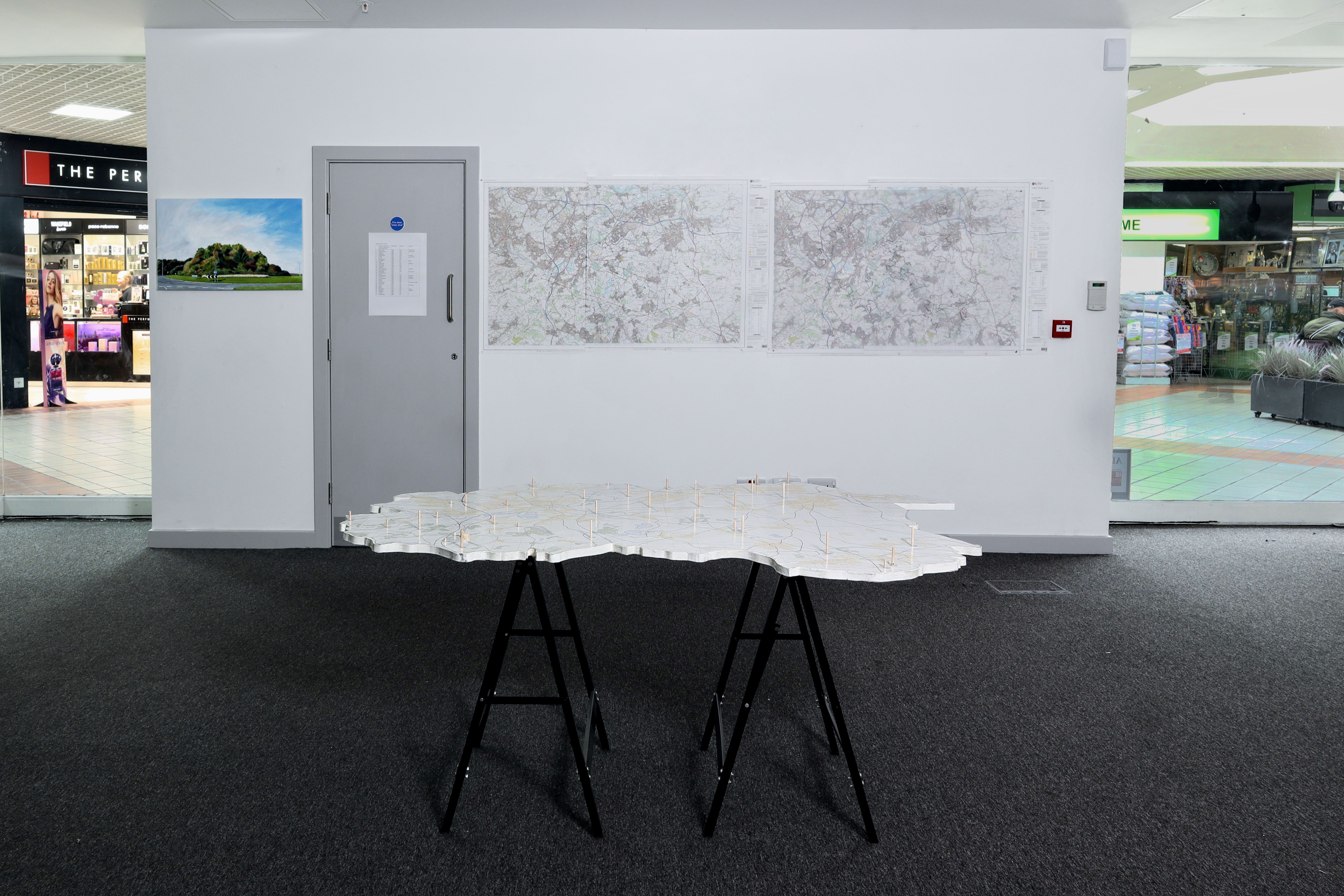 The project’s findings were documented through maps, paintings, drawings and sound. These were brought together, alongside previous work exploring the district, to form an interactive exhibition in The Ridings Shopping Centre, Wakefield in March 2023.
