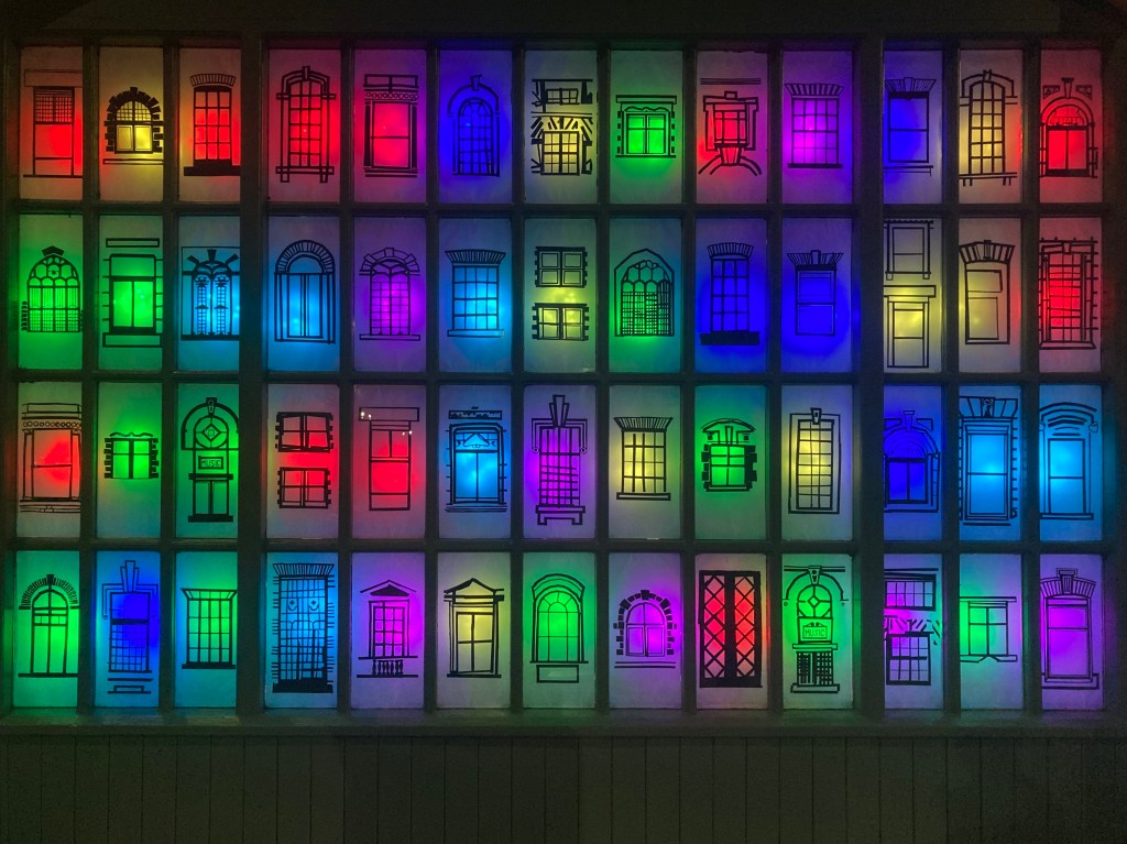 Each panel in the window changes colour, mimicking the popular disco floors of the 70’s and 80’s