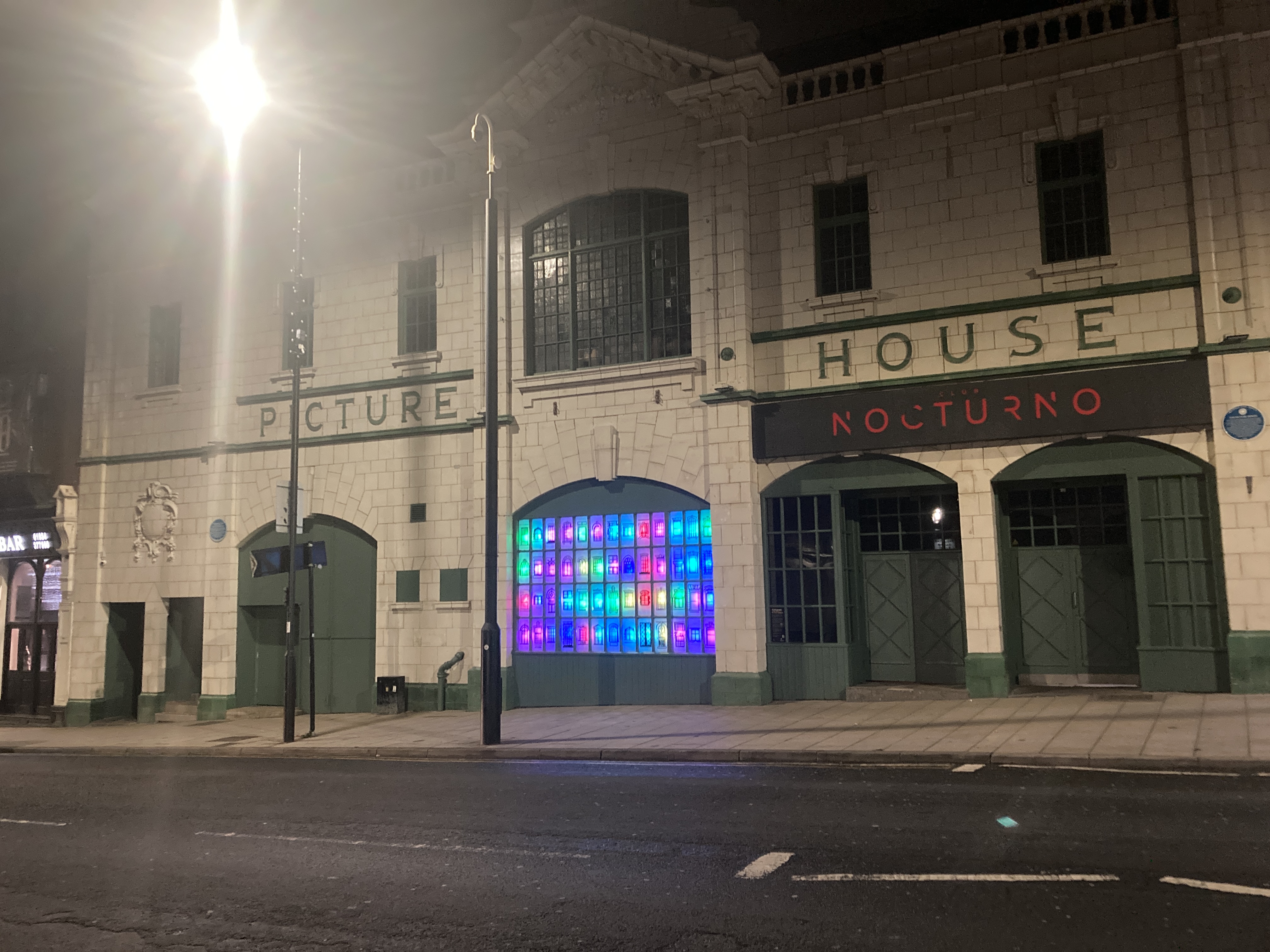 Funkytown is situated in the window of Nocturno nightclub. This building has been at the heart of the city’s disco and clubbing scene for decades.