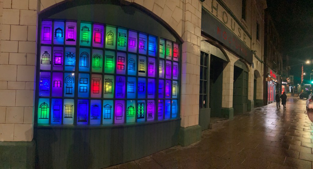 Funkytown is a new light installation created in partnership with artist Helen Thomas. The artwork was co-created with people from CoActive, Empath Action, Wakefield Studio of Sanctuary, and pupils from Lawefield Lane Primary School.