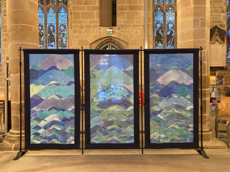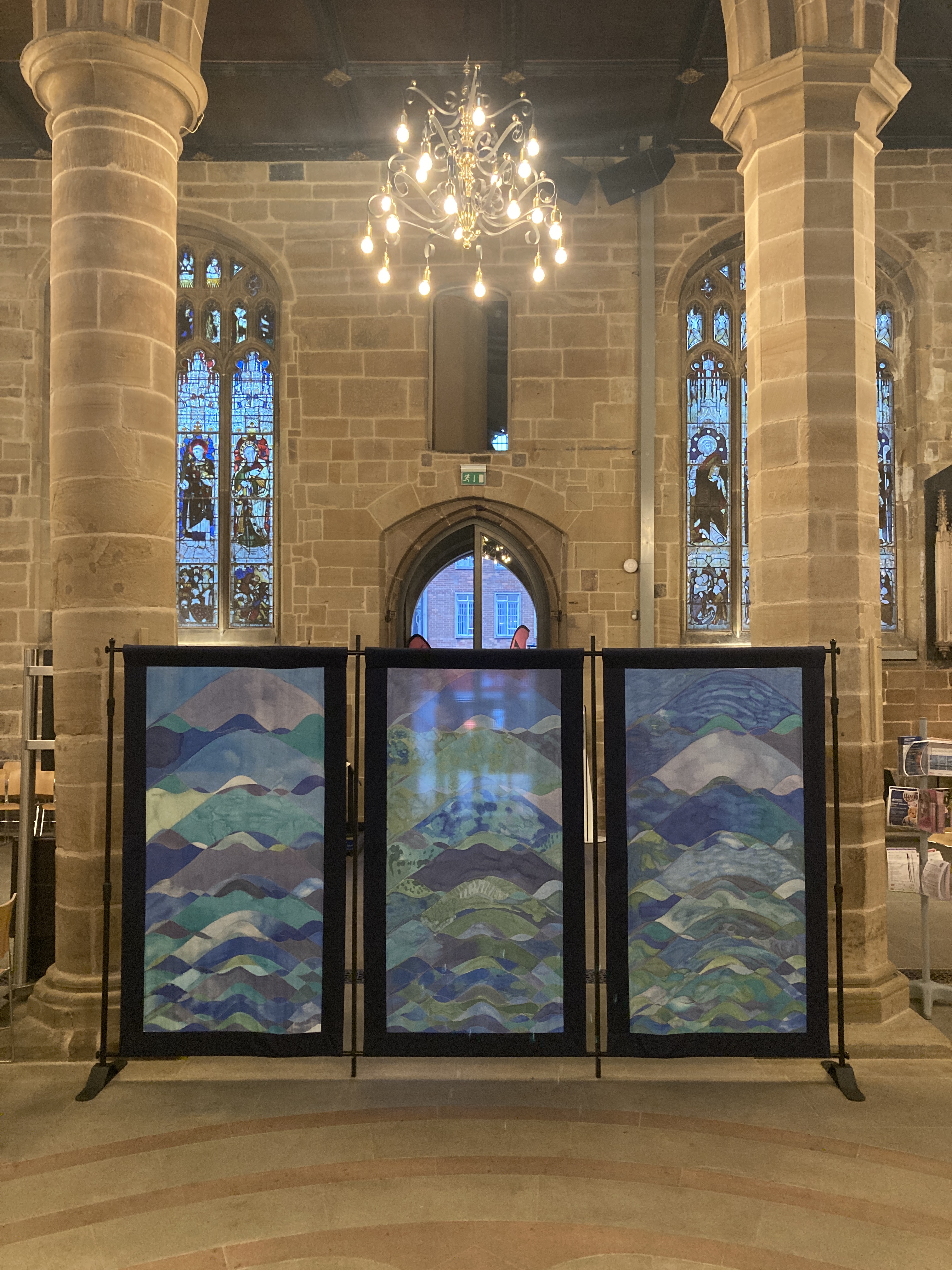 A triptych of textile pieces for the Watermarks exhibition at Wakefield Cathedral.