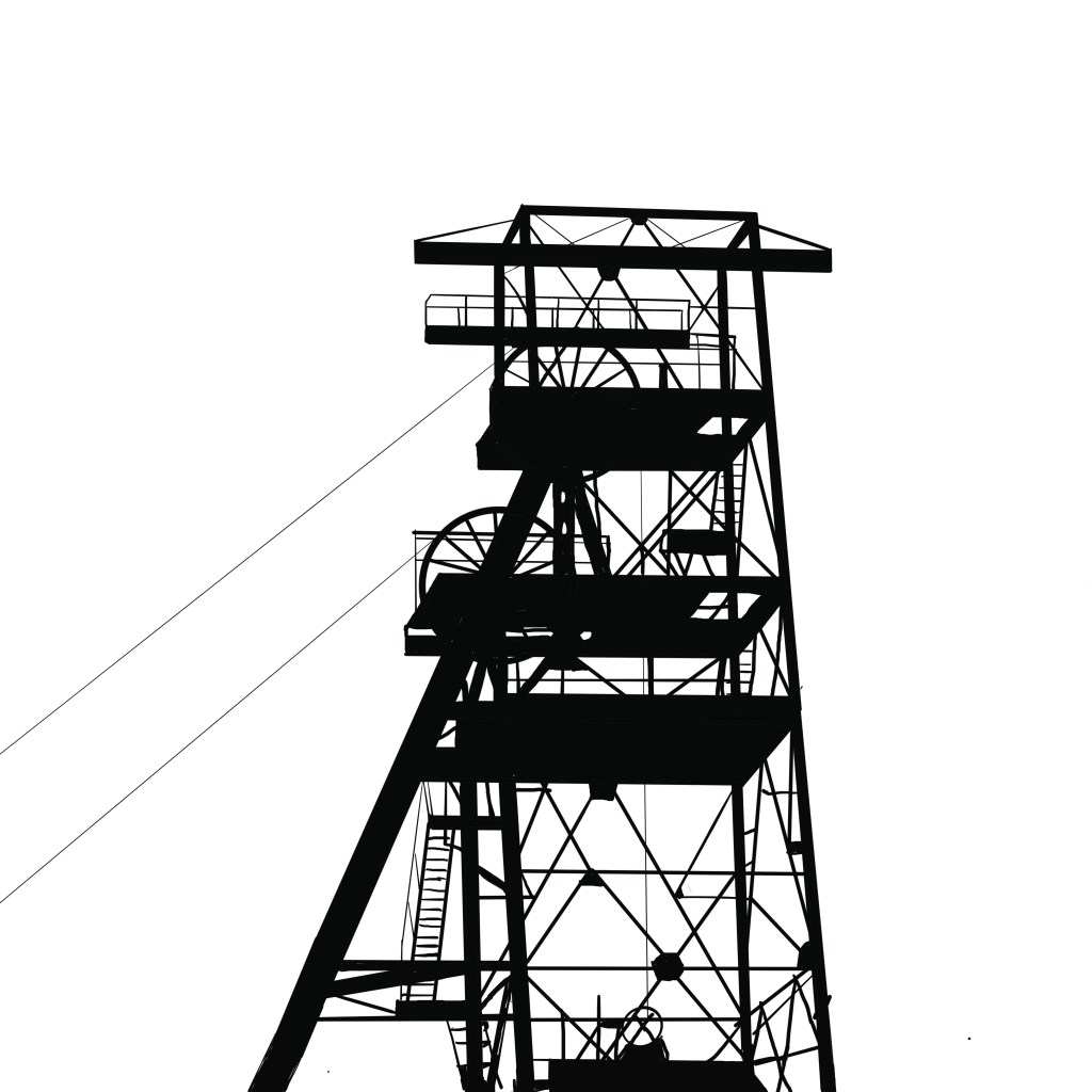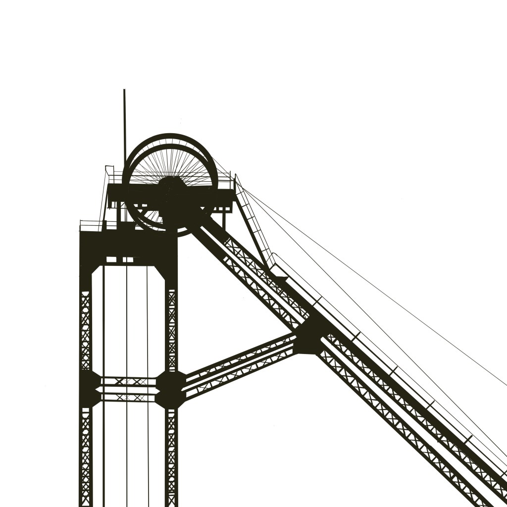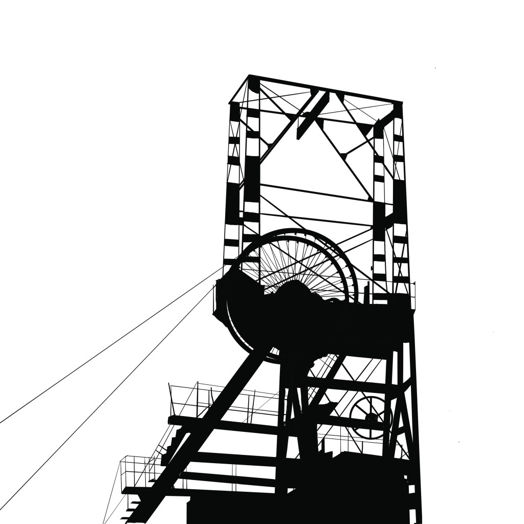 30 drawings of 30 winding wheels and headstocks of 30 collieries that once existed in the Wakefield district.