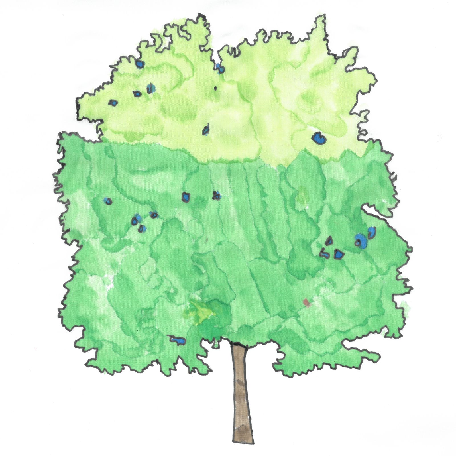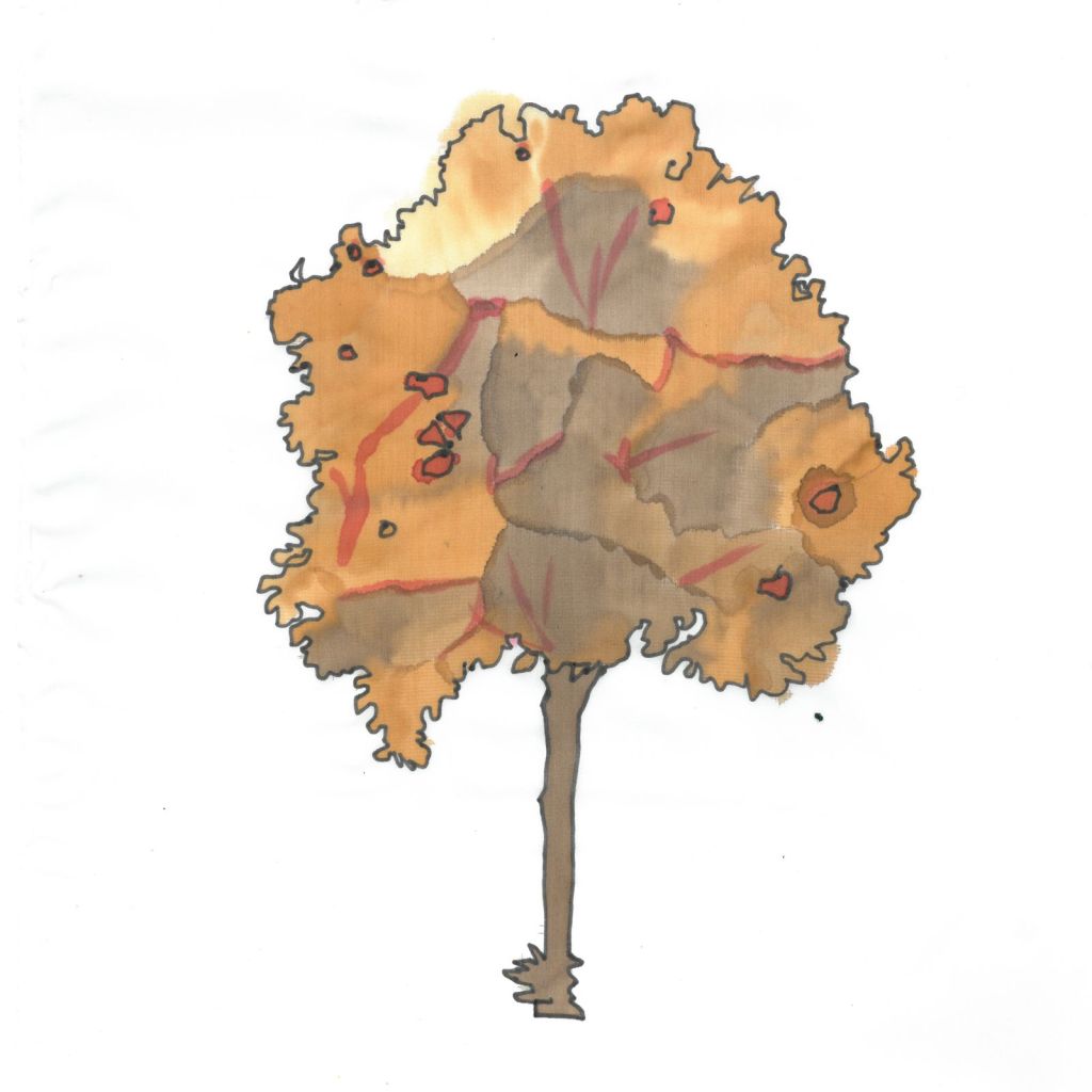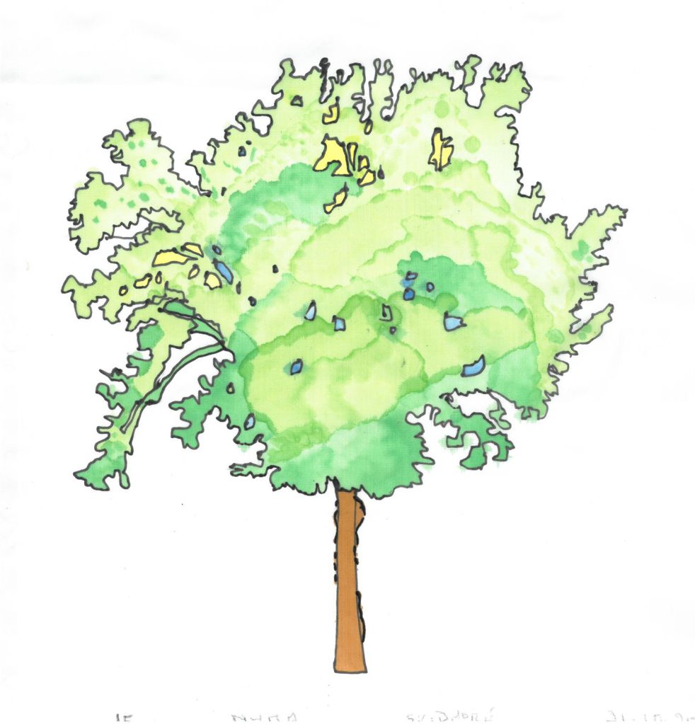 Each painting has a number, and that corresponds to the list of trees. Numbers 1 to 20 are on the North side of the road, counted from Airedale Library to Airedale Road heading West. Numbers 21 to 36 are on the South side of the road, heading back to Airedale Library.