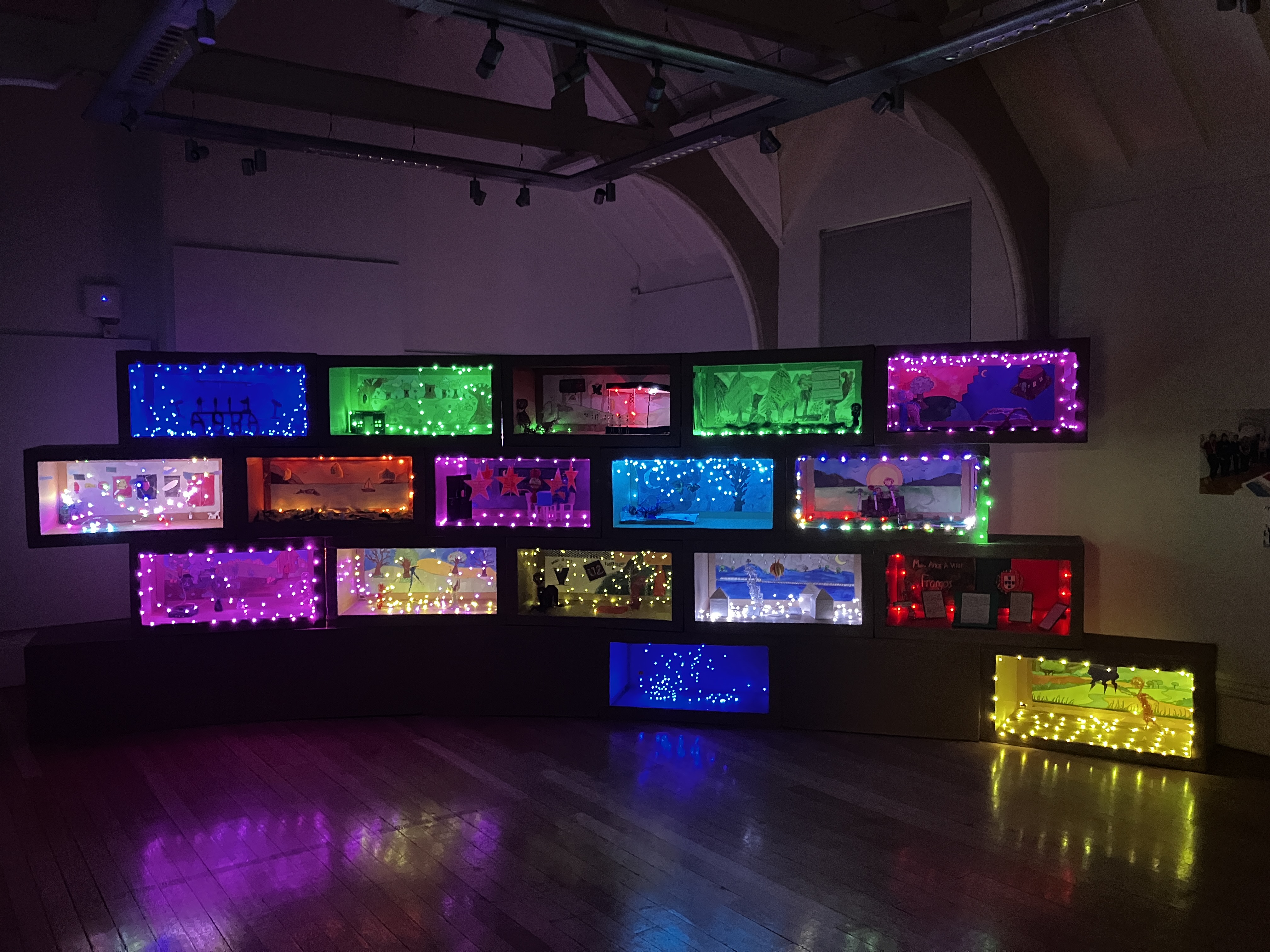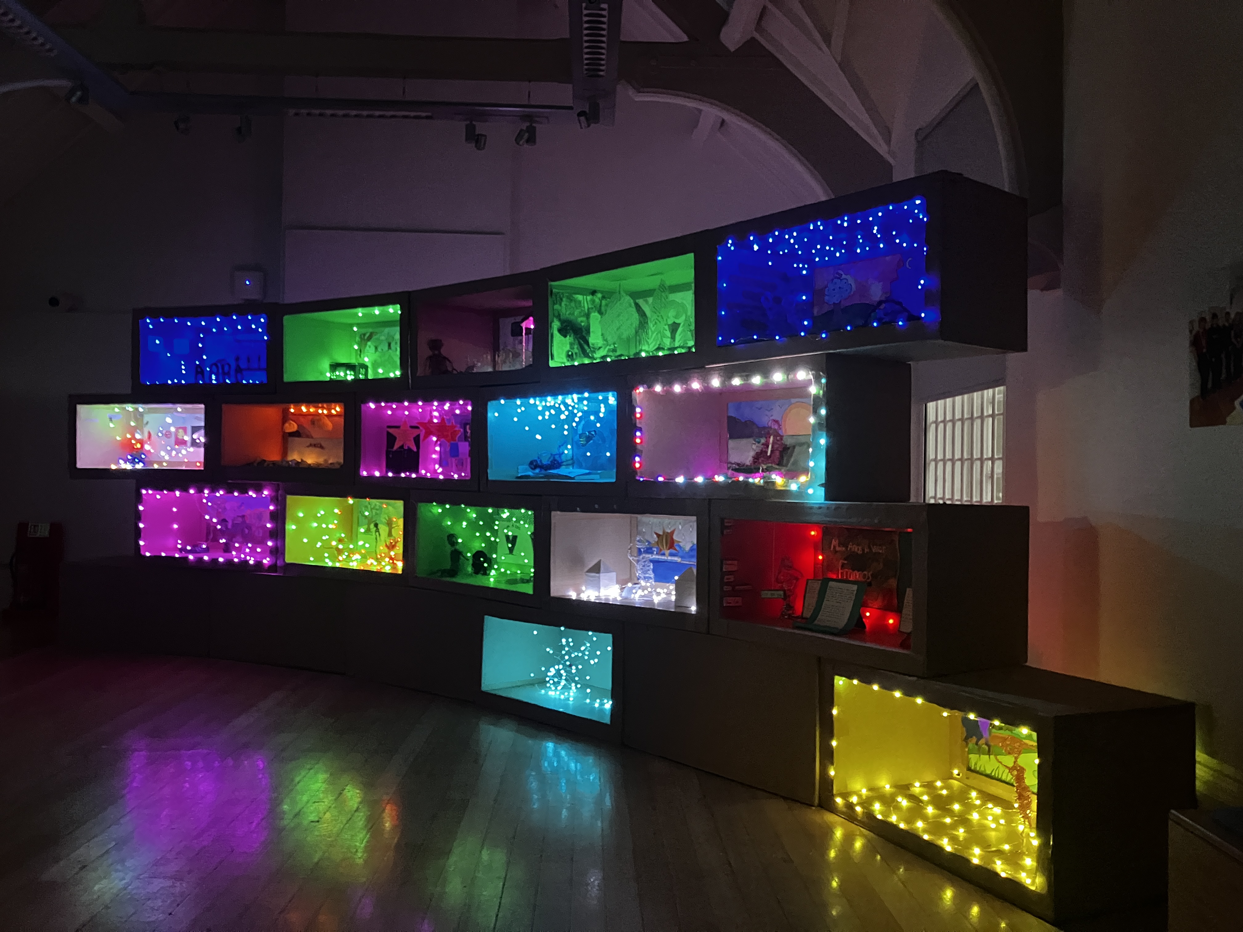 Each young person designed and made the content for an individual 1m x 0.5m brick that would be a part of a wall installation. Using aluminium wire, silk-painted backdrops, words, lights, and sculpture, they explored themes of mental health and wellbeing, and the steps they take to address concerns they have.