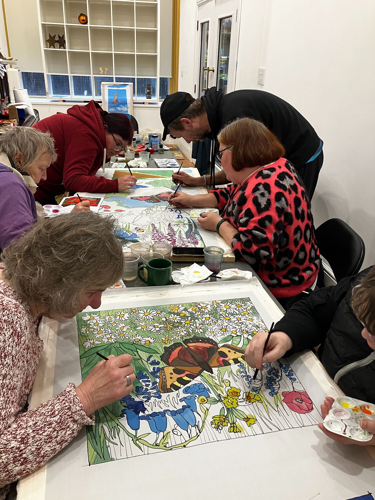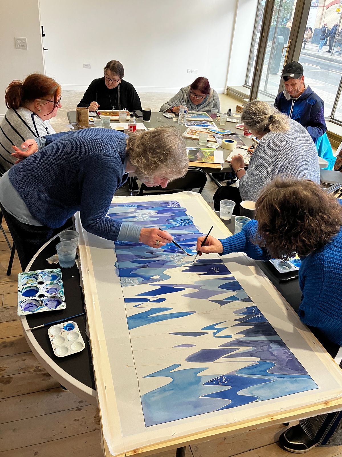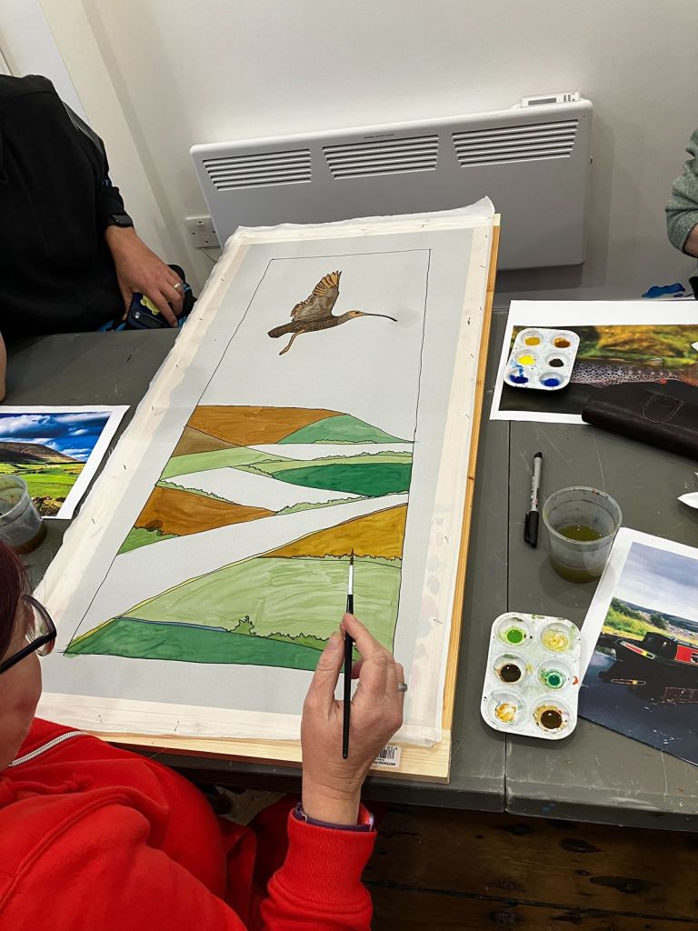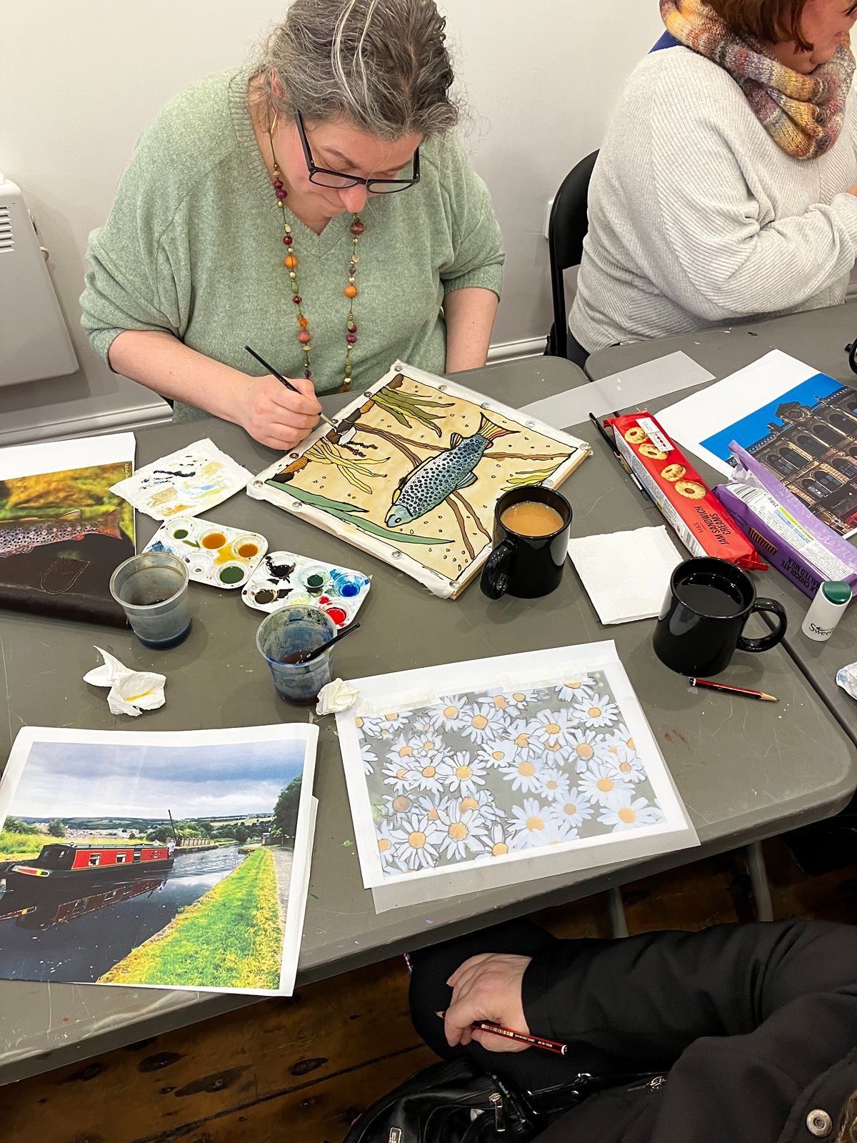 The group started off by making small individual silk paintings before progressing to larger collaborative pieces.