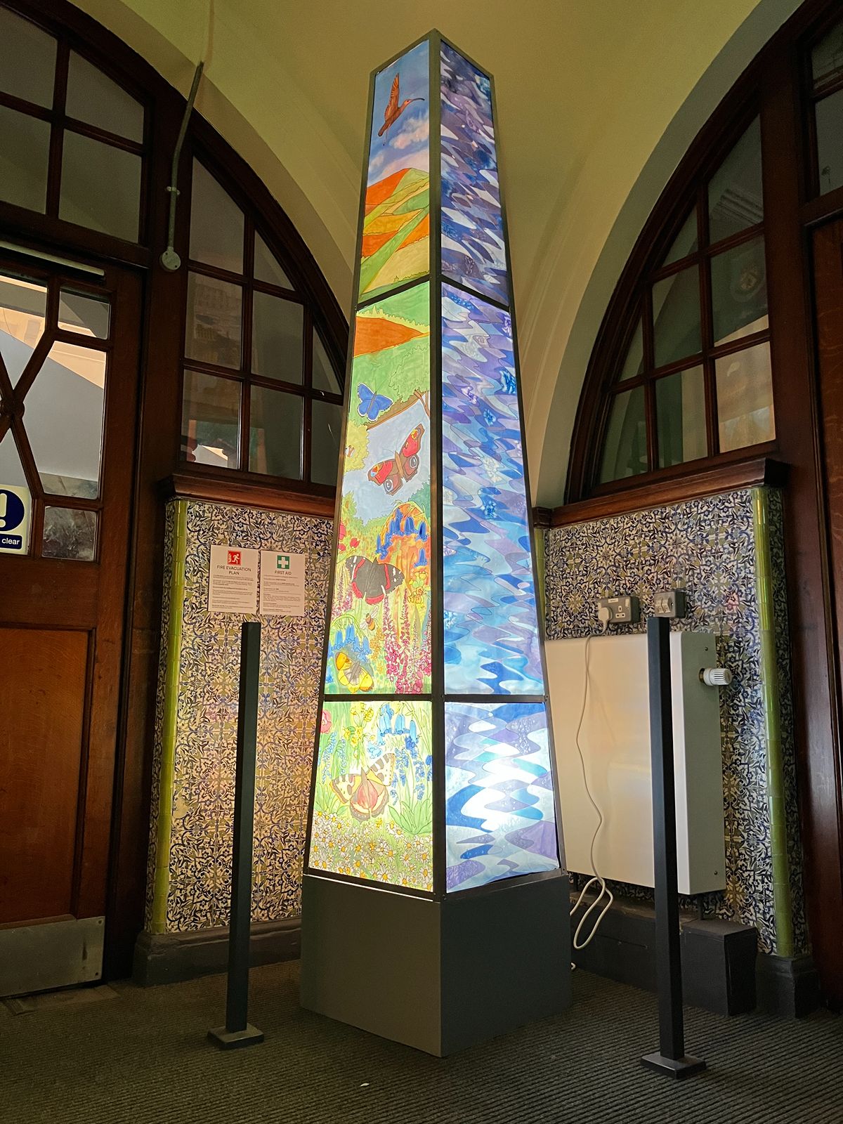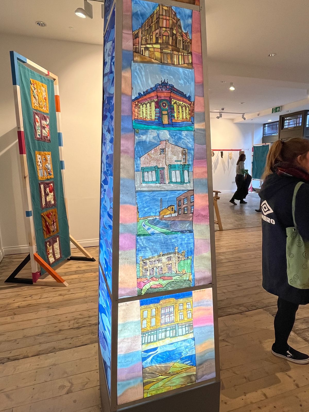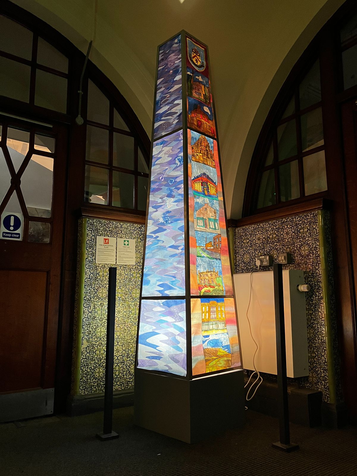In 2025, I was commissioned by Ground Up in Brurnley to work with the group to create a piece for an exhibition in Gallery OneTwoThree. Over 10 sessions, we created an illuminated chimney depicting scenes from Burnley, including iconic buildings from the town. It also shows images of Burnley’s countryside and waterways.